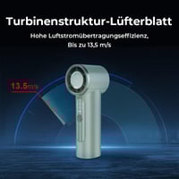 ✨ Starke Leistung: Ausgestattet mit einem Hochleistungsmotor (bis zu 23.000 U/min!) und turbinenförmigen Lüfterblättern erzeugt dieser Ventilator eine kühlende Brise mit 13,5 m/s – schnell, effizient und erfrischend! 🚀